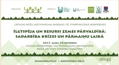 30.oktobrī Latvijas Valsts mežzinātnes institūta “Silava” un projekta LIFE IS SALACA upmalu mežu vadošais eksperts Mārcis Saklaurs piedalījās Latvijas Mežu sertifikācijas padomes 10. starptautiskajā konferencē “Ilgtspēja un resursi zemes pārvaldībā: sadarbība krīzes un pārmaiņu laikā”.