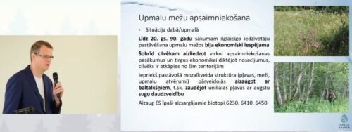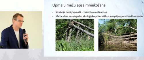 Otrajā sesijā – “Meža un ar to saistīto nozaru ilgtspēja: zinātniskie aspekti un atšķirīgas pieejas” – Mārcis Saklaurs lasīja lekciju “Upmalu meži”, iepazīstinot dalībniekus ar LIFE IS SALACA projekta ietvaros paveikto upmalu mežu izpētes un apsaimniekošanas jomā.